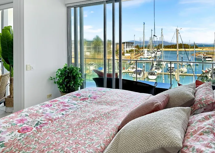 マリーナの景色を望む快適な雰囲気の寝室2室のBlue On Blue Apartment 933 Nelly Bayは、Hawkings Point Lookoutから徒歩で25分以内の住宅街に位置しています。